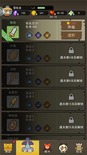 5、通关后会有各类奖励,玩家可点击武器,利用通关所得物品来强化自己的武器。
