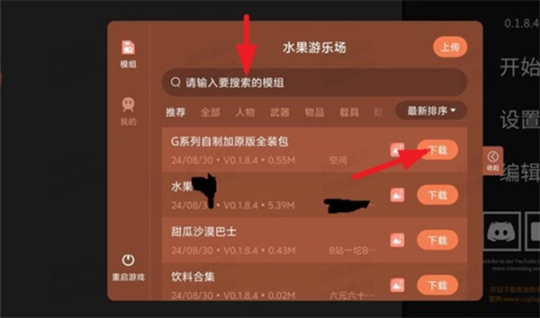 2、玩家可在搜索框内输入所需模组的名称,以此直接定位到目标模组,随后点击右侧按钮即可完成自动安装。