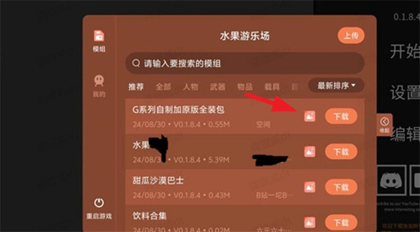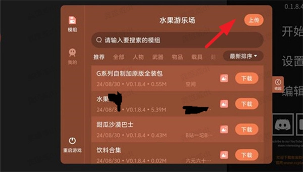 3、同时还能将自己创建的模组上传。