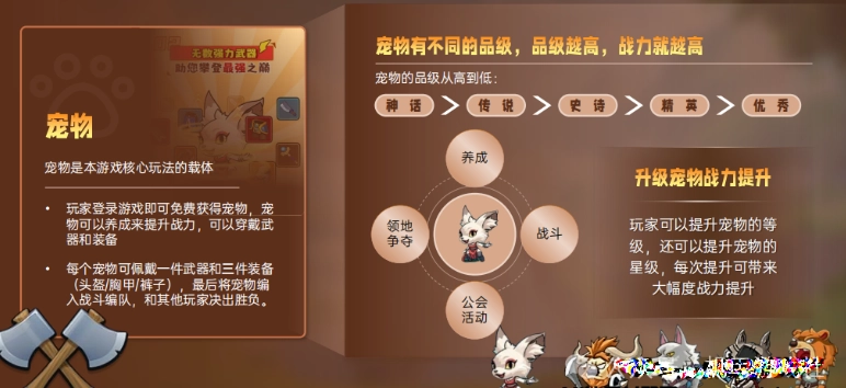 游戏里的宠物有着不同的品级划分,涵盖优秀到神话等不同等级,每个品级都会对宠物的战斗力产生影响。玩家能够借助升级与升星这两种方式,来提升宠物的能力。