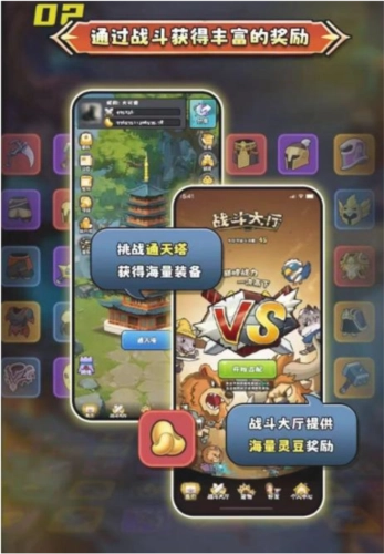 游戏的核心玩法是战斗,玩家既能参与玩家间的对战,也能挑战通天塔战斗,以此提升自身战力并获取武器装备。战斗形式丰富多样,无论战斗结果是胜是负,玩家都能得到灵豆作为奖励,而且挑战的层数越高,所能获得的装备品质就越高级。