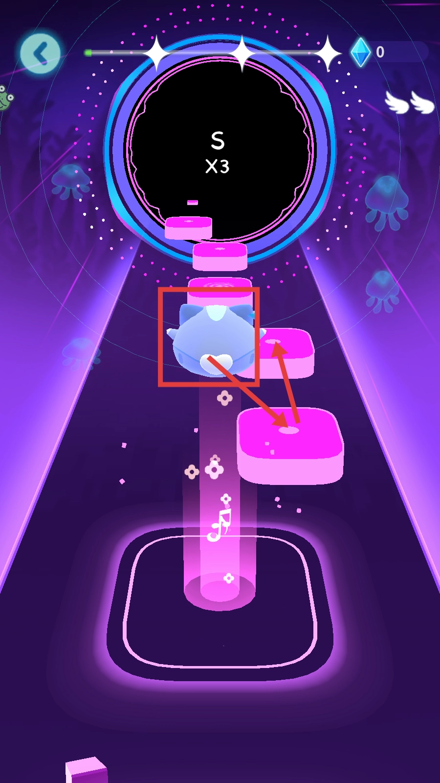 在挑战过程中,需操控角色精准落在【粉色方块】上,同时保持节奏以达成【S×3】评分,从而推动关卡继续前进。