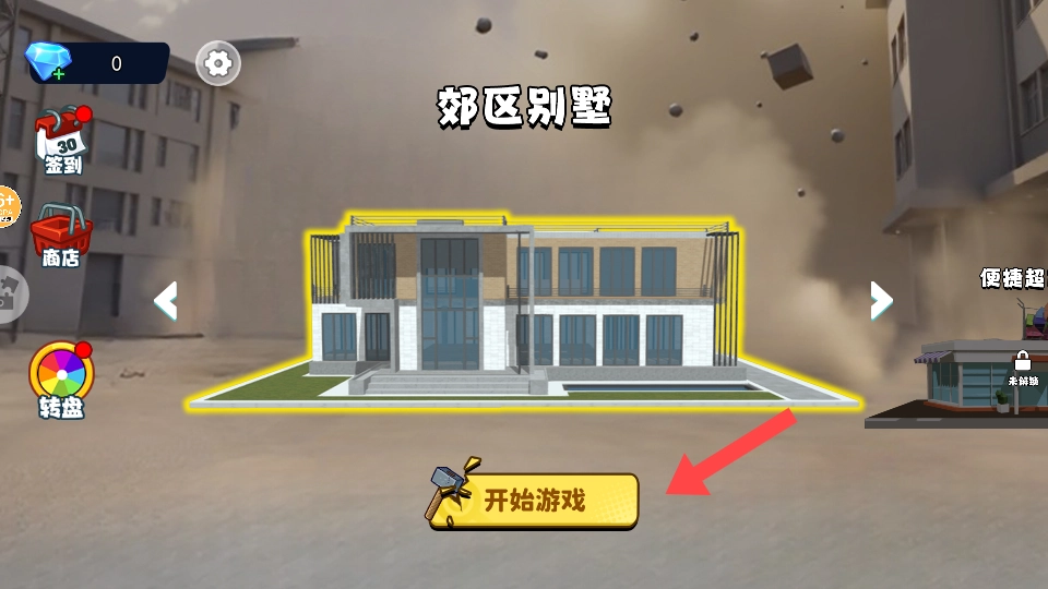 1、点击【开始游戏】按钮进入【郊区别墅】的场景,准备协助邻居整理和修理家具。