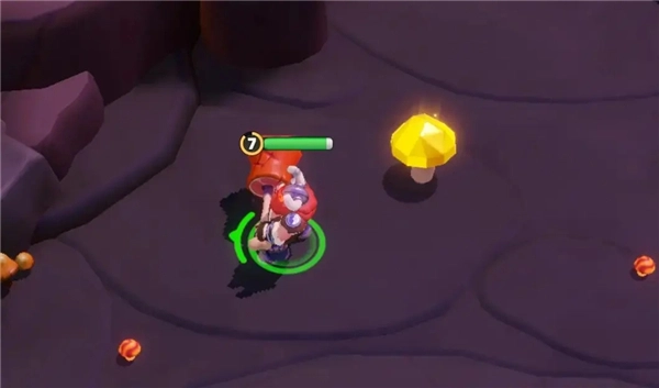 传说中的金菇,个头比普通蘑菇大出不少,吃上十个就能管饱,它也生长在熔浆地形里,不过得先吃够熔岩菇攒足力气,才能和对手去争抢这美味的金菇呢!