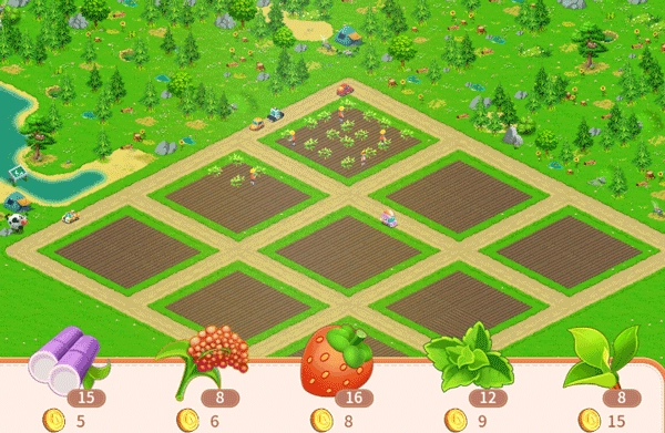 2、在庄园里,我们能够依据订单需求或是个人喜好,种植所需的作物,像草莓、甘蔗、水稻、玉米这类日常生活所需以及现实中常见的作物。