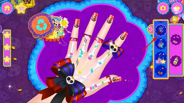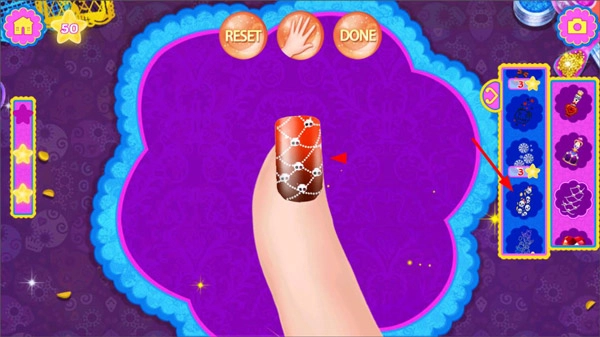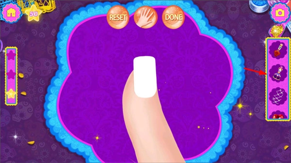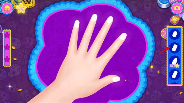 4、在指甲油涂抹完成后,玩家能够从工具栏里挑选装饰品,为指甲增添装饰元素。