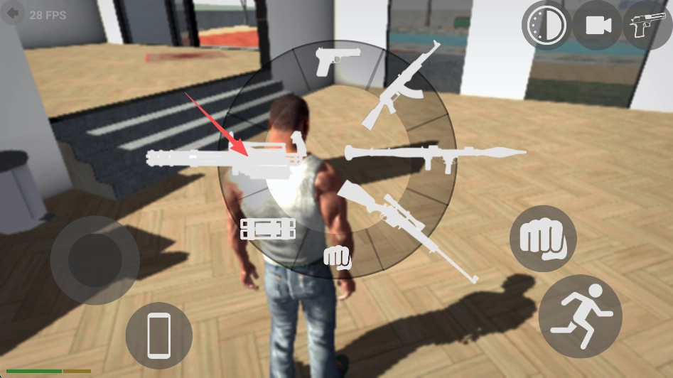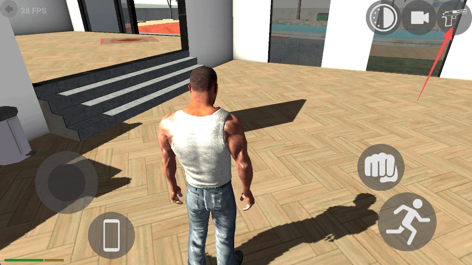 3、点击屏幕右上角的“手枪”标识。