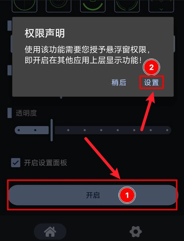 1、在安装,首次打开时,请根据引I导或通过手机设置开启悬浮权限。