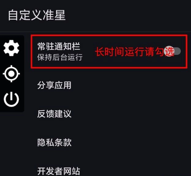 设置面板支持微调准星位置、大小等参数。支持显示/隐藏准星切换,不需要跳转到应用设置页面,可以随时双击关闭设置面板。