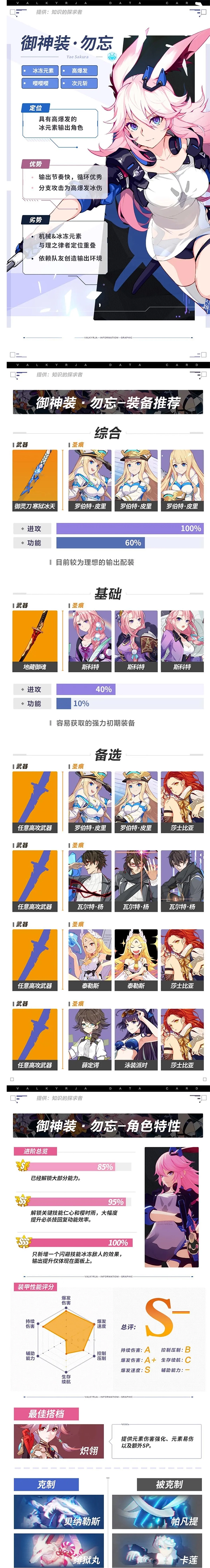 这位角色在多数领域表现平平,唯独在终结技输出上极为突出,对超限武器与SS阶解锁的动能回复机制有较高依赖。考虑到灵魂觉醒角色晋升SS阶需消耗大量碎片,若并非特别喜爱该角色,不推荐投入资源培养,单纯欣赏其外观就足够了。