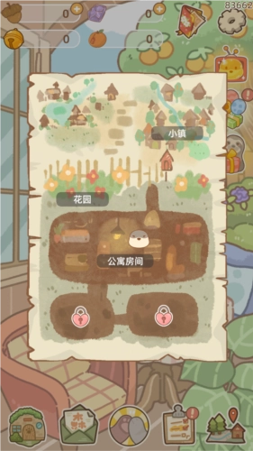 打开《鼹鼠同行之森林之家》这款游戏,进入游戏界面后,玩家需要按照右上角爪子图标里显示的任务要求来推进并完成任务,完成任务后就能领取对应的奖励,像去餐馆购买便当、努力完成打工任务这类都属于可完成的任务内容。