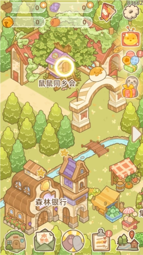 首先启动《鼹鼠同行之森林之家》这款游戏,进入游戏界面后,点击右上角的【礼物盒子】图标。