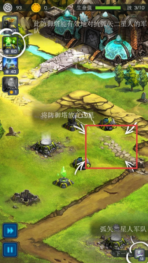 合理布置防御塔,根据敌人类型挑选合适的塔种,增强防御能力,抵挡敌人的进攻。