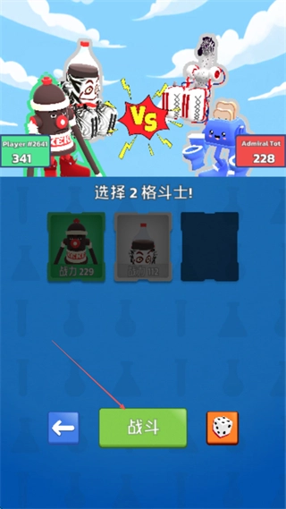 选择2个格斗士,点击战斗进入对战。