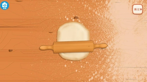 拿起擀面杖,通过调整操作时的力度和方向,把面团擀成符合要求的面饼形状,这就完成了制作的第一步。