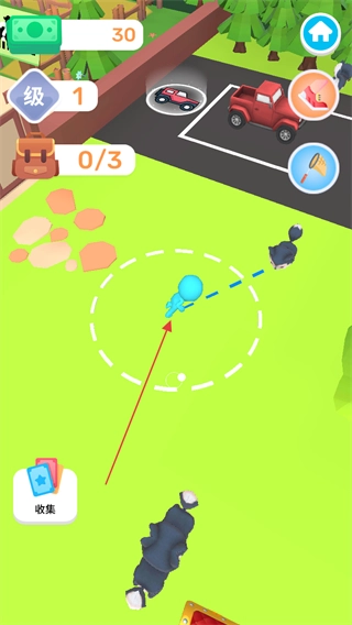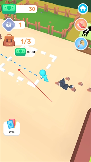 进入游戏后,操控蓝色小人移动,靠近牛群,做好抓捕的准备。