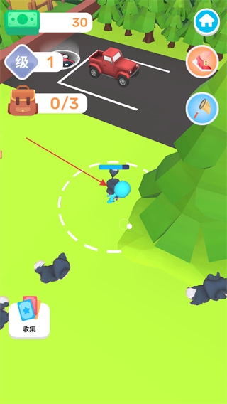 请留意屏幕上方显示的任务进度提示,比如像0/3这样的标识,按照要求收集足够数量的牛。