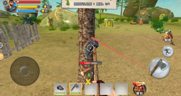 靠近树木之后,不断点击屏幕,直到将树给砍掉。