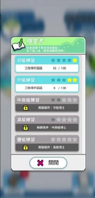 完成一定数量的题目后,就能参加教授考试,通过提升等级来解锁难度更高的关卡。