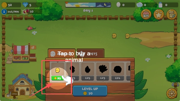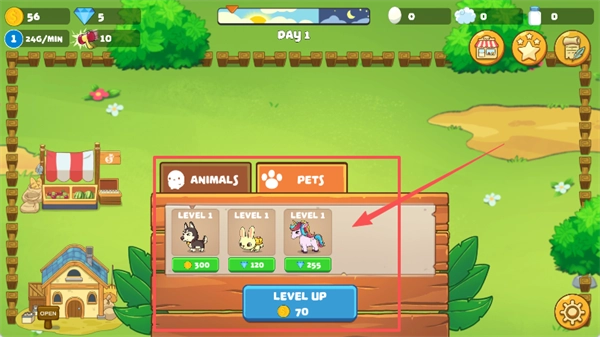 通过拖放操作把两个等级相同的动物合并,就能生成更高级别的全新品种动物,同时还能提高产出效率。