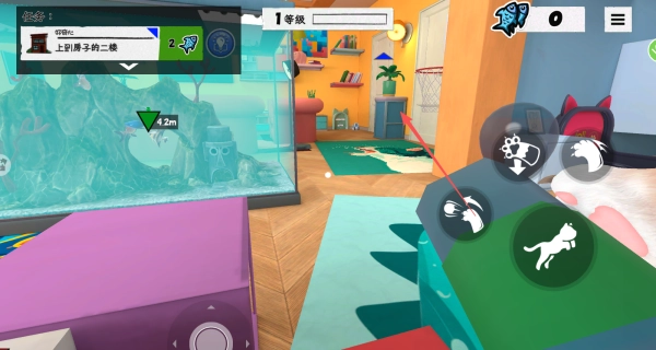 借助右侧的交互按钮,能够操控猫咪和周围的物品展开互动。