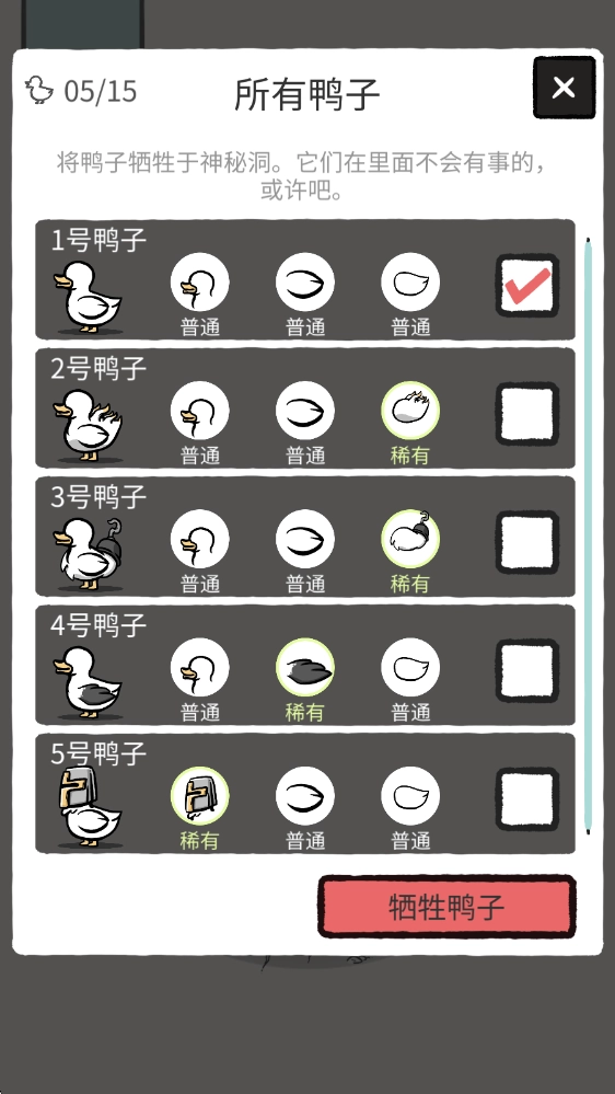 当鸭子数量达到上限后,点击左侧的鸭子图标,就能在这里舍弃已有的鸭子。