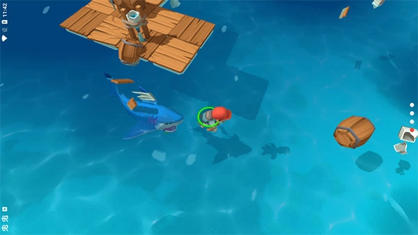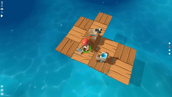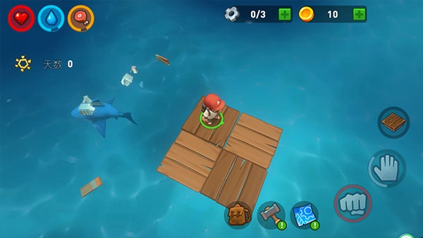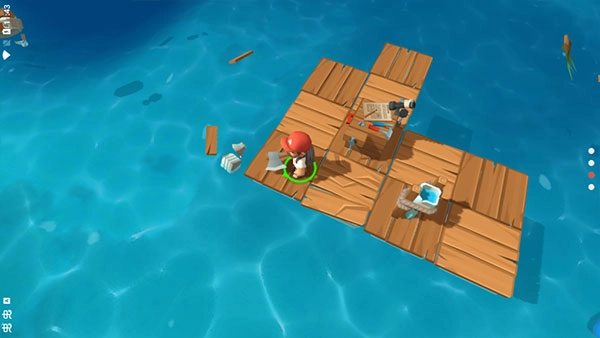 在游戏里,玩家得操控角色下木筏,收集必要的物品,还要搭建对应的设施,这样才能更顺利地生存下去。