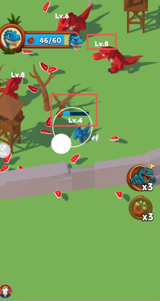 当遭遇高等级的红色恐龙时,建议不要正面直接对抗。应优先挑选等级比自己低的目标发起攻击,以此保证战斗能够获胜并获得经验值。