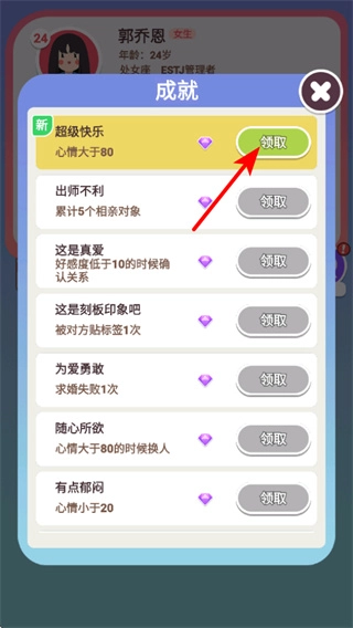 在游戏里领取成就奖励,这可是积累资源的重要步骤,领完之后能拿到钻石之类的资源,对角色成长和恋爱推进都很有帮助。