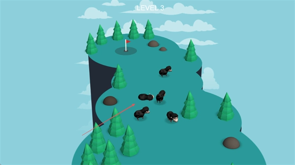 避开树木和石块,精准击打羊群,使其向目标移动。