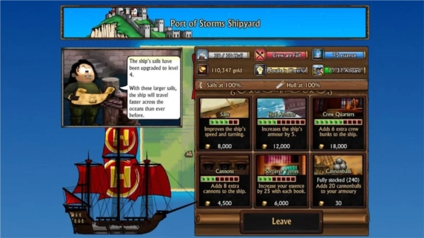 打造并升级你的船帆、大炮、船体装甲等装备,凭借亲手建造的大帆船,让敌人在你的威慑下胆战心惊。