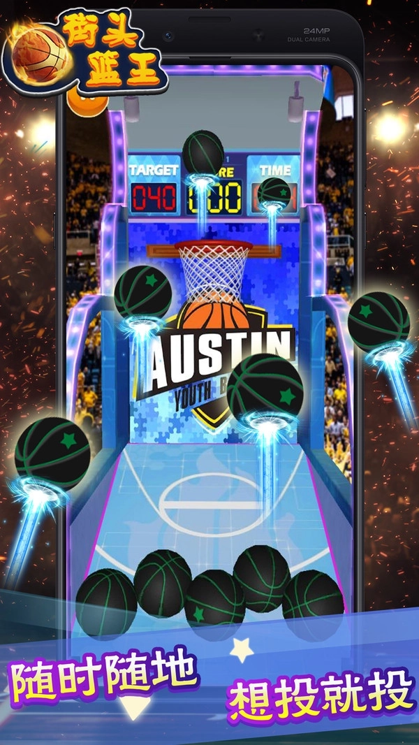 1、十分经典的街头投篮游戏模式,借助手机就能去完成更高分数的挑战啦。
