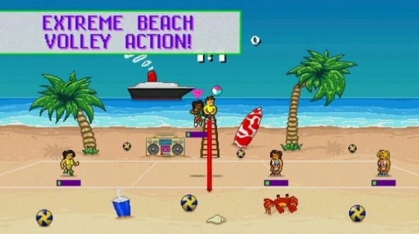 《热血沙滩排球》是一款像素风格的排球游戏,故事发生在风光旖旎的海滩上——这里有迷人的景致,游客们都沉醉其中。不如来一场紧张刺激的沙滩排球友谊赛,尽情享受美好的假日时光吧!游戏操作简单易上手,你能快速投入比赛,轻松挑战对手直至赛事结束。只要勤加练习,还能解锁各种酷炫扣球技巧,助力你赢得胜利。此外,游戏支持双人模式,快带上好朋友,一起快乐地打排球吧!
