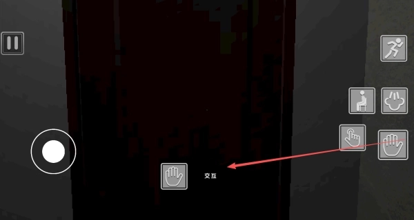 2、把屏幕中央的瞄准镜对准能够互动的物体,点击右边的手掌图标,就能触发开门之类的操作。