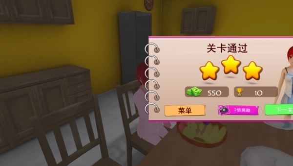 4、关卡通关后,你可以选择点击“下一关”继续挑战来赢取更多奖励,也能通过观看视频获得2倍奖励,进一步提升收益。