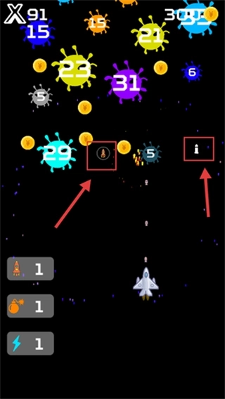 3.在战斗过程中收集掉落的能量晶体,能够为特殊武器充能,例如触发全屏激光攻击,或是召唤护卫机来提供辅助作战支持。