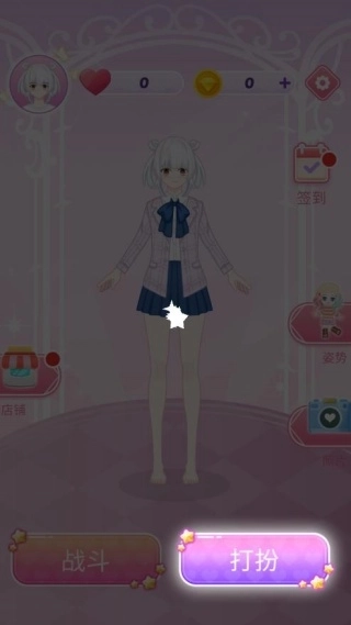 1、在自由换装系统里搭配各种萌系服饰,点击打扮按钮就能开始装扮角色啦。