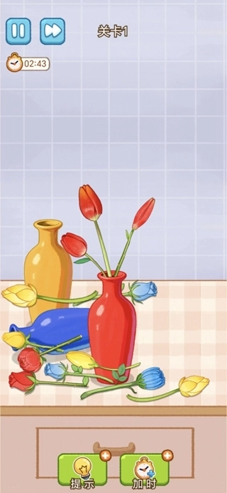 1.进入游戏之后,将下面不同颜色的花插入花瓶中。