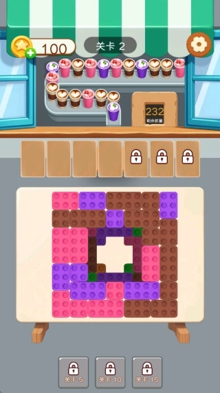 4.如下图所示,随着关卡的逐步推进,咖啡的颜色种类和数量都会不断增加,这将大幅提升匹配消除的难度。