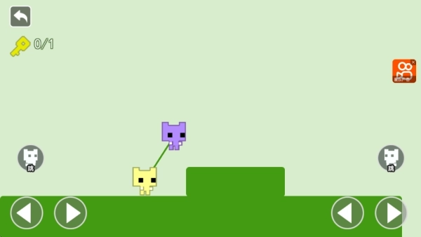4.在这种模式下,玩家得同时操控两只猫咪的动作,借助左右两边的按钮来指挥猫咪移动,只有找到钥匙才能顺利通过关卡!