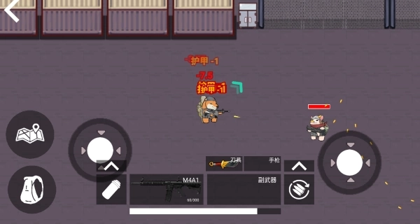 2、战斗移动过程中要灵活运用地图和背包按钮,遇到笔记本这类可交互物品时,先靠近查看具体内容;切换武器可通过滑动底部快捷栏来操作,使用近战刀具时需留意敌方的行动方向。