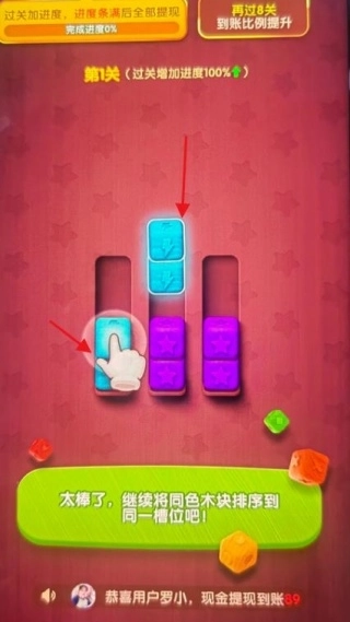 发财金块是一款超有意思的方块堆叠消除休闲游戏!它的画面金光闪闪,让人一看就心情舒畅。玩家只需拖拽方块堆叠起来就能完成消除,还能触发连锁反应和连击效果。随着关卡逐步推进,会解锁爆炸方块、彩虹万能方块等各类特殊道具。游戏拥有上百个关卡,玩法模式丰富多样,总能为你带来持续的新鲜感和闯关的乐趣。