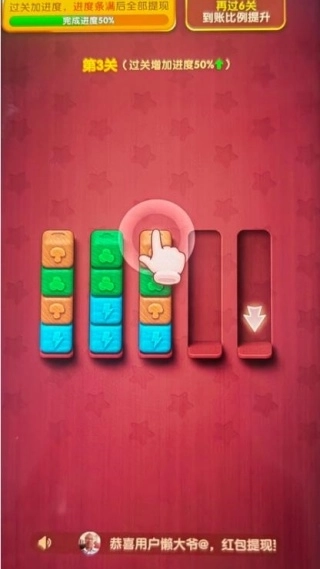 2、借助空槽位临时摆放方块,灵活调整布局,为后续实现多组消除创造条件,优化闯关节奏。