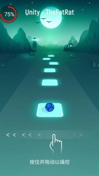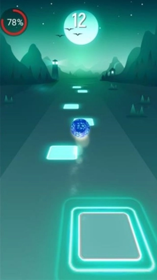1、这款游戏操作毫无难度,只要让球跟着歌曲的节奏顺利完成跳跃,就能通关。