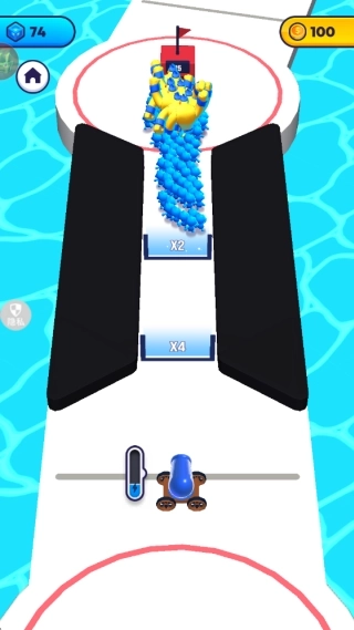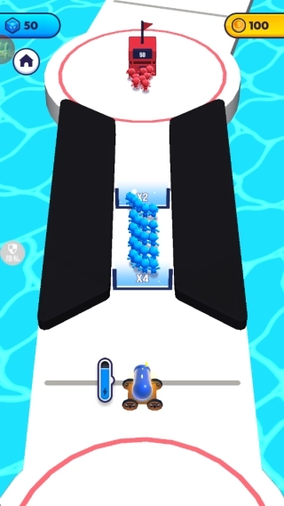 2、优先引导蓝色小人经过“×2”“×4”的倍增区域,以快速壮大队伍规模。