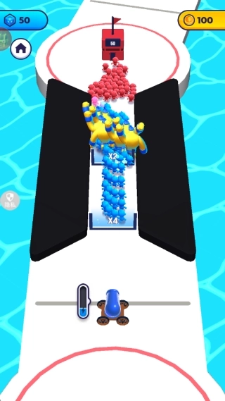 3、当与黄色和红色队伍竞争时,要优先安排蓝色小人通过“×2”“×4”区域,以此快速扩大队伍规模。