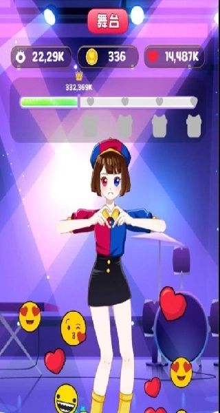 3、登上舞台后,需滑动屏幕收集飘落的爱心,连续点击能够形成连击,从而获得额外分数。