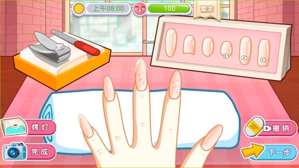 2.如下图所示,在女神美甲店的游戏模式里,玩家需依据客人的具体要求来完成美甲操作。