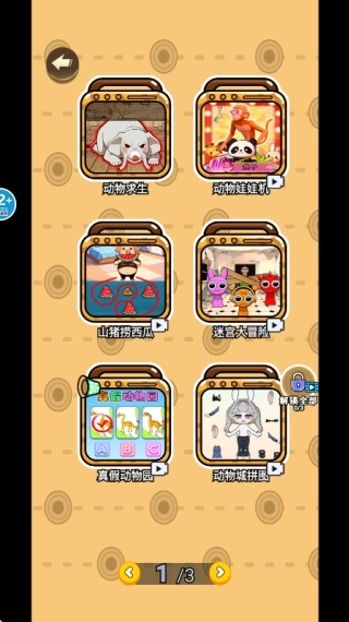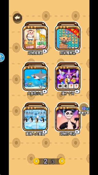 2.就像示例图展示的那样,游戏里有三页不同主题的关卡可供玩家自由挑选,点击相应页面就能开启该主题的脑力挑战环节。