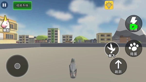 1、自由操控鸽子飞行,飞行途中可进行捣蛋,与各种事物展开友好互动。